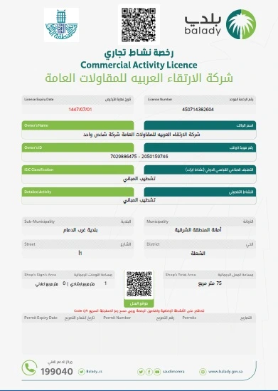 تُعد شركة الارتقاء العربية للمقاولات شركة سعودية ذات مسؤولية محدودة متخصصة في مجال المقاولات العامة، حيث تقدم الشركة حلولاً متكاملة في تنفيذ مشاريع البنية التحتية والأعمال الإنشائية، مع الالتزام بأعلى معايير الجودة والسلامة المهنية، وفق أفضل الممارسات المعتمدة في قطاع المقاولات.
